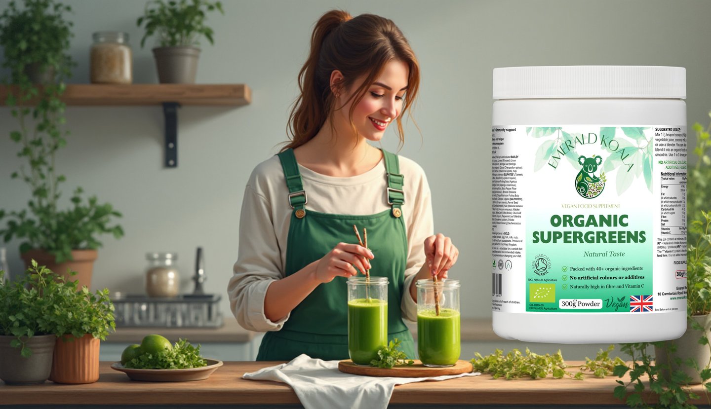 In a fast-paced modern world, getting high-quality plant nutrition shouldn’t be complicated. So we set out to create a greener, cleaner way to support everyday wellbeing. Our flagship blend, Organic SuperGreens, is crafted from 40+ certified organic ingredients — vibrant greens, berries, fruits, seeds, herbs and mushrooms — each chosen with koala-level care. No fillers. No artificial flavours. No shortcuts. Just nutrient-dense purity, exactly as nature intended.